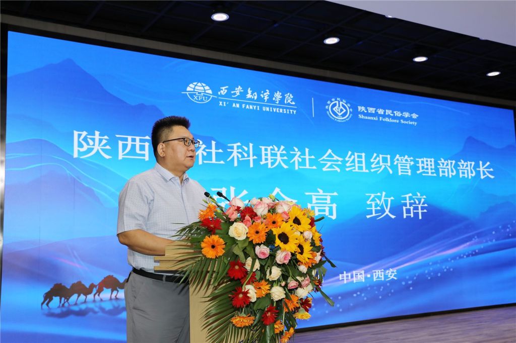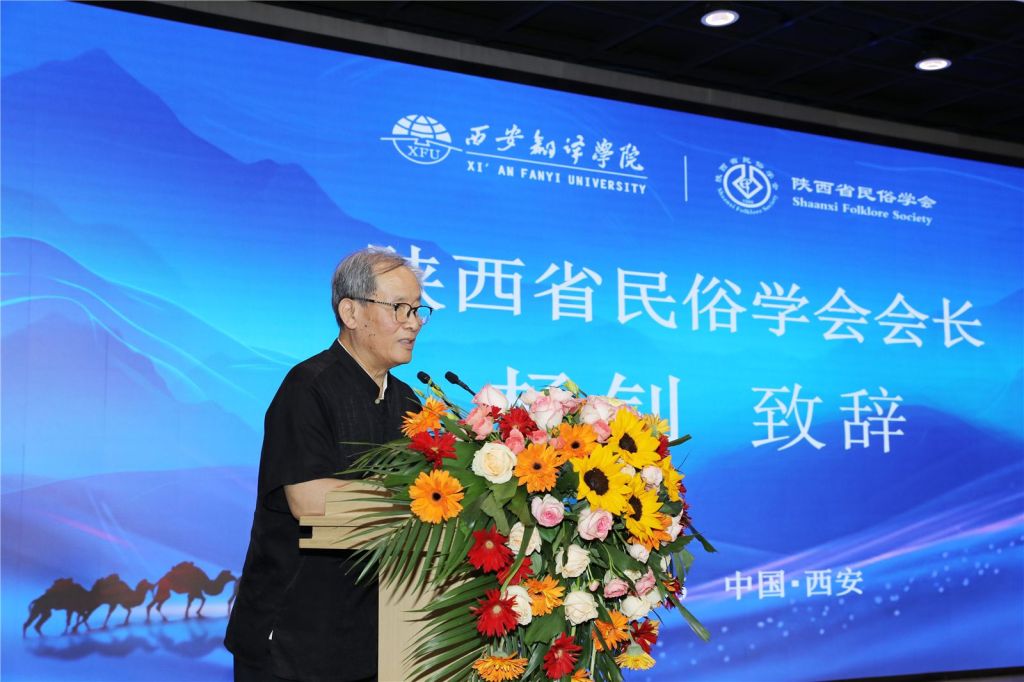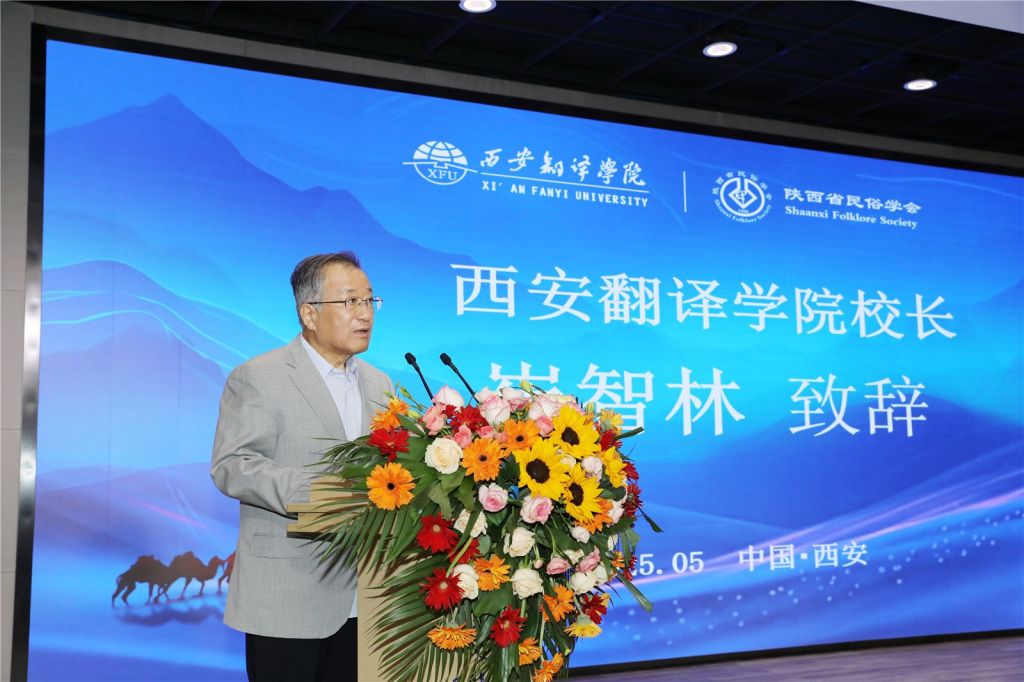 杨钊以终南山为文化原点展开致辞。他指出,这座承载“寿比南山”人文理想的中华祖脉,既是张载“为天地立心”的关学圣地,又见证着佛教六大祖庭的禅灯传续,更留存着道教三大祖经之一《纯阳真人浑成集》的千年墨香。美国汉学家比尔·波特在《空谷幽兰》中描绘的终南隐逸文化,至今仍在秦岭褶皱间生生不息,太白积雪映照的不仅是“林表明霁色”的诗境,更滋养着西安翻译学院“敢为天下先”的治学精神。杨钊表示,此次研讨会以三大主题重构文明对话路径:通过“互鉴”维度梳理丝路沿线婚俗、乐舞等民俗基因的交流谱系;立足“传播”视角探索数字技术赋能非遗传承的创新实践;聚焦“交流”平台构建跨国别民俗研究的协作网络。同时,面对全球化语境下的文化传承命题,杨钊提出“四化建设”方略:以革命化坚守文化根脉,用年轻化激活传统基因,凭学术化提升研究深度,借专业化构建传承体系,力图实现陕西民俗文化从“文化高原”向“学术高峰”的跨越。