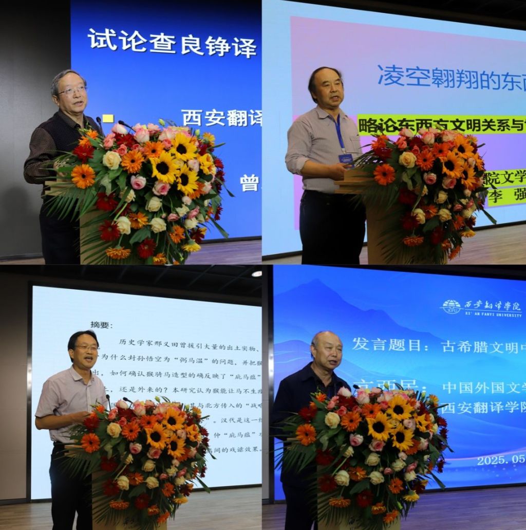 在主旨演讲环节,国内外知名学者围绕“丝绸之路与中外戏剧交流”“翻译视角下的民俗文化传播”“数字技术赋能文化遗产保护”等主题分享前沿成果。孟昭毅作《丝绸之路上的中国与西亚、北非文学文化交流》主旨发言;李伟昉作《中国古典戏剧与莎剧百年比较反思》主旨发言;郝岚作《AI时代小语种文学的问题与困境》主旨发言;王廷信作《由“势差原则”思考跨文化视角下的艺术传播》主旨发言;中国东方文学学会副会长,天津师范大学教授、博导黎跃进作《“丝路涉华文学”论纲》主旨发言;刘建军作《拜占庭帝国在东西方文化交流中的作用》主旨发言;王立新作《经典重温:从<赵氏孤儿>到<中国孤儿>一两种思想与艺术观念的对话》主旨发言;曾艳兵作《卡夫卡与中国当代文化》主旨发言;商子雍作《非学术眼光里的玄奘》主旨发言;西安翻译学院文传院教授、博导李强作《凌空翱翔的东西方凤鸟》主旨发言;陕西民俗学会副会长,李永平作《“弼马温” V.S“庇马瘟”:文化遗产的奥秘》主旨发言;曾思艺作《试论查良铮译<丘特切夫诗选>》主旨发言;中国外国文学教研会前副会长,西安翻译学院文学与传媒学院教授、博导亢西民作《古希腊文明中的东方基因与西方叙事》主题发言。