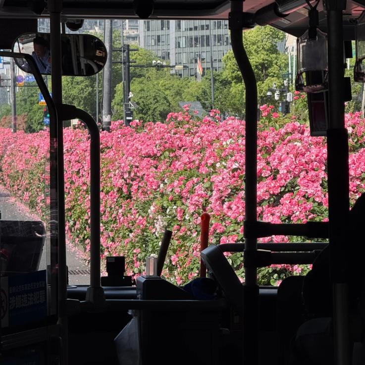 网友在社交平台上分享:“杭州不愧是大城市,连公交都是商务座,杭州公交已经Next level,舒适度100%,可以半躺着欣赏路边的月季。”