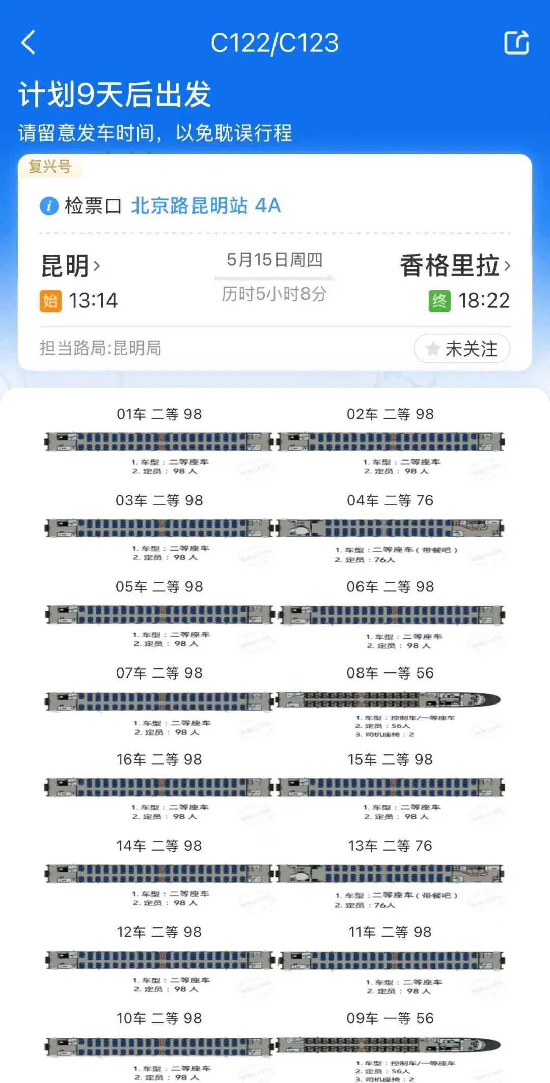 所乘列车的餐车位置