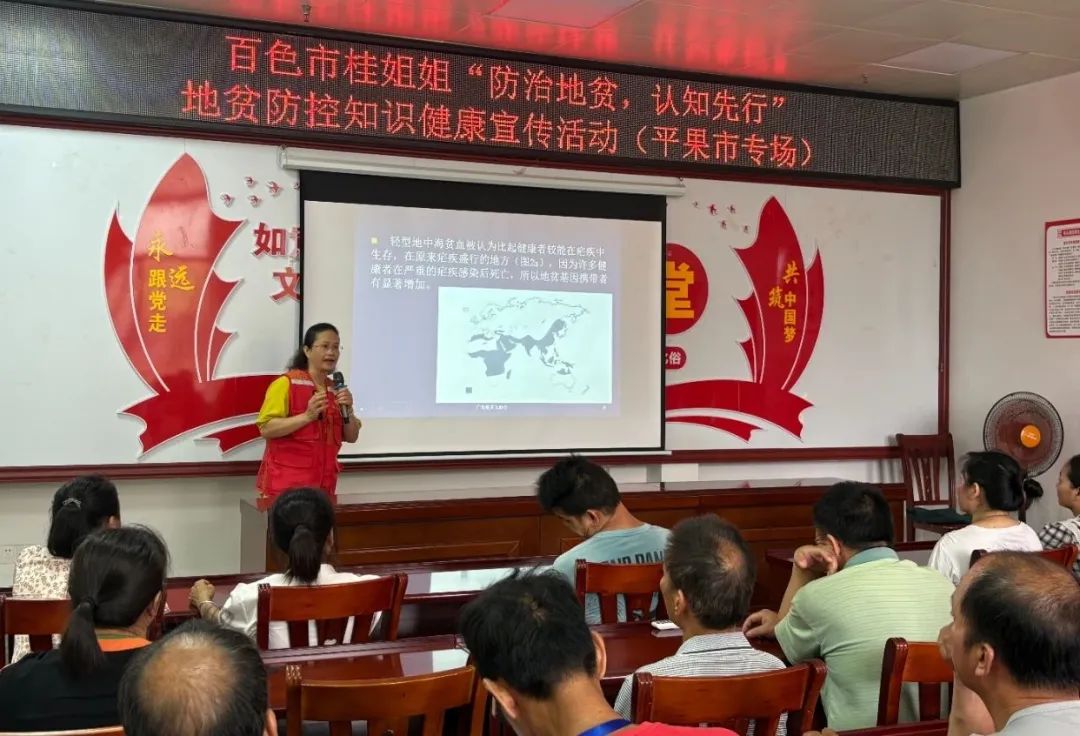 5月8日,平果市妇联联合市委社会工作部、市妇幼保健院在如意社区、妇幼保健院开展“世界地贫日”宣传活动。活动通过设置宣传台、发放宣传资料和科普礼品等形式,向群众普及地贫预防知识;举办桂姐姐地贫防控健康知识讲座,解读地贫发病机制、遗传规律及防控要点。活动发放宣传资料400余份,受益群众200余人次,推动“早筛查、早干预”理念深入人心。德保县