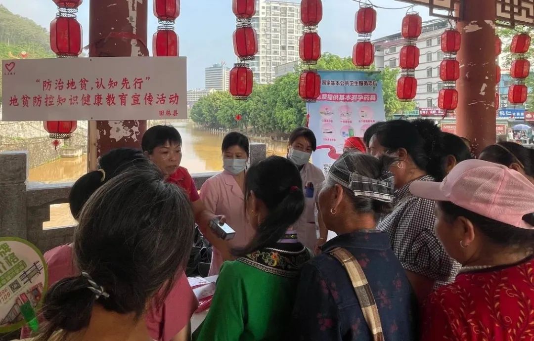 5月8日,乐业县妇联联合多部门开展“世界地贫日”主题宣传活动。医护人员现场讲解地贫防控知识,提供血压、血糖测量等常规体检服务,为有地贫家族史或备孕夫妻提供遗传咨询,评估遗传风险,讲解产前诊断重要性,指导科学预防重型地贫患儿出生。活动发放宣传资料200余份,接受咨询150余人次。田林县