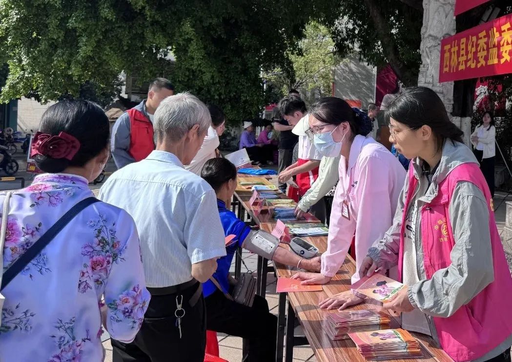 5月8日,西林县委社会工作部、县妇儿工委办、县卫生健康局等部门联合在民族文化广场开展“世界地贫日”主题宣传活动。活动采用“科普+义诊”模式,为100余名群众提供免费血压测量和义诊服务,重点普及“早重视、早筛查、早预防”理念,宣传优生知识和惠民政策,强化生育指导,共发放宣传手册100余份。原标题:《关爱地贫志愿服务系列活动(二)┃“情系地贫患儿 爱满红城百色”——百色市桂姐姐关爱地贫患儿巾帼志愿服务项目温暖启航》