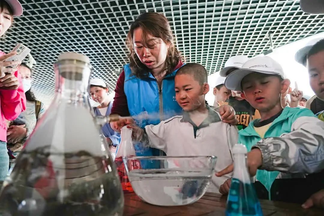 兴庆区科协组织志愿者组织干冰及马德堡半球科学实验,增加现场的趣味性