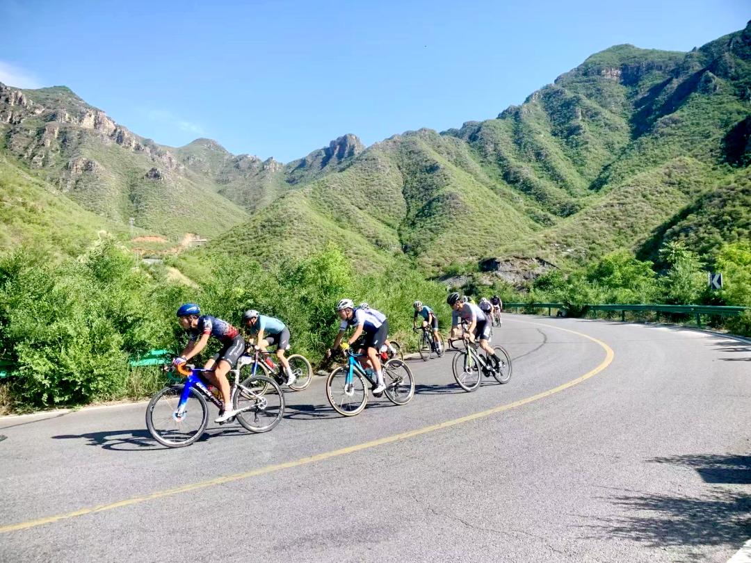 5月11日,参赛选手们在易县龙西公路爬坡路段骑行,尽享户外运动之趣。张子龙 摄