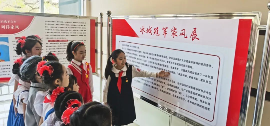 为深入贯彻落实习近平总书记关于思政课建设的重要指示批示精神,加强党对中小学思政课建设的全面领导,全面贯彻党的教育方针,落实立德树人根本任务,推进大中小学思想政治教育一体化建设,充分发挥家校社协同育人的独特优势,2025年5月10日,哈尔滨市妇女联合会助力哈尔滨市花园小学校开展了一场别开生面的思政专题教育活动。此次活动以冠军家庭的坚韧、拼搏、奉献精神为依托,通过“冰城冠军家风”专题展览,向学生们展示了哈尔滨这座“冰城”地域特色下的体育冠军家风资源。展览融入了本土文化的温度,让思政教育更加生动、接地气。