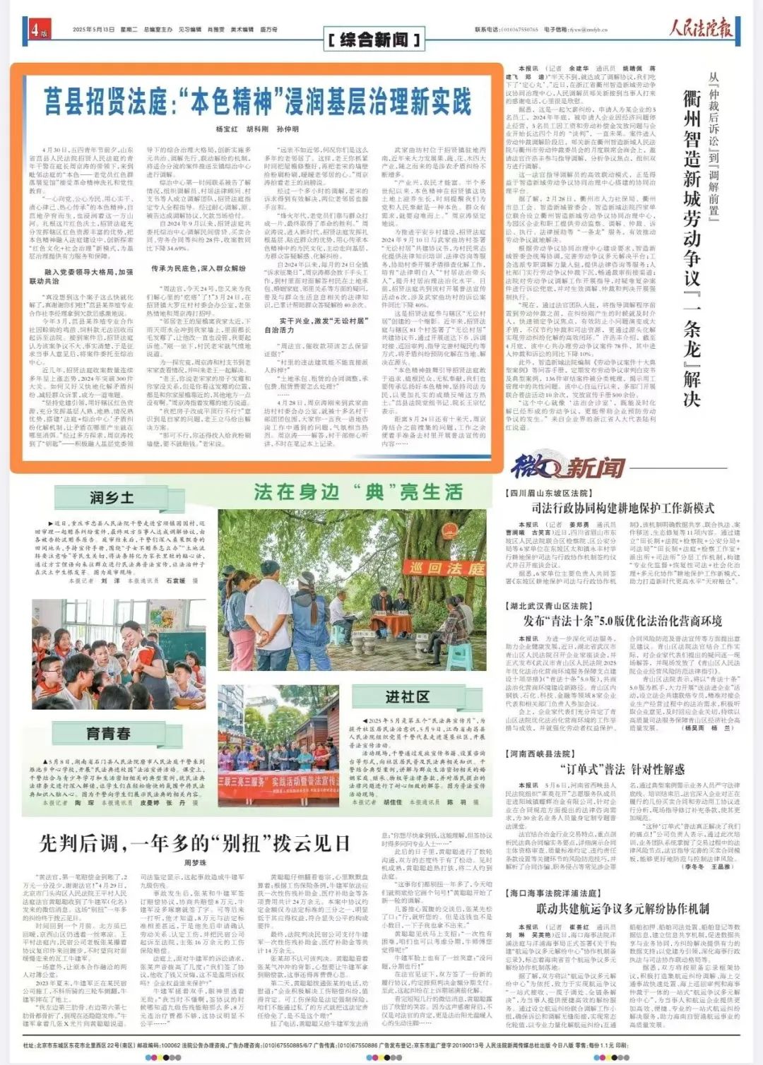 原标题:《【媒体聚焦】《人民法院报》:莒县招贤法庭:“本色精神”浸润基层治理新实践》
