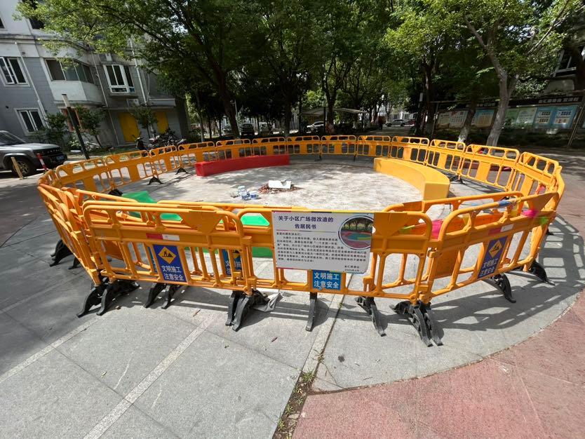此处原本是一片圆形草地,然而小区建成已有20余年,经年累月的踩踏与风雨侵蚀,让这片草地变得坑洼不平,每逢雨天便积水严重,不仅影响美观,还存在一定安全隐患。小区的“老干部议事团”对此提出了建议。老干部议事团成员蔡又新介绍说,议事团发现广场草地的问题后,第一时间将情况反馈给居委会,居委会联合多方力量,经过多次协商讨论,最终确定通过结对共建的形式,将“泥泞地”改造成集休憩与儿童嬉戏功能于一体的区域。