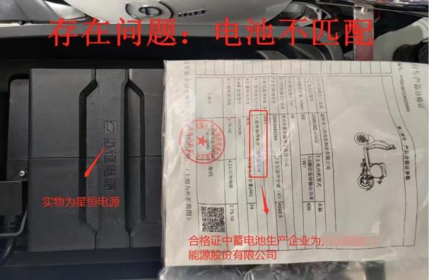 将产品合格证上的参数与电动自行车进行比对: