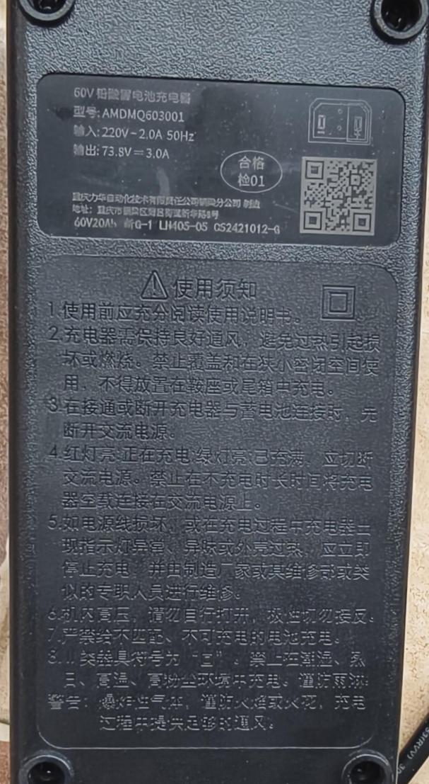 4.电动自行车充电器检查电动自行车充电器产品国家强制性标准GB42296-2022在2023年7月1日起正式实施,对于生产日期在2023年7月1日之后的充电器产品的质量初步判定方法如下: