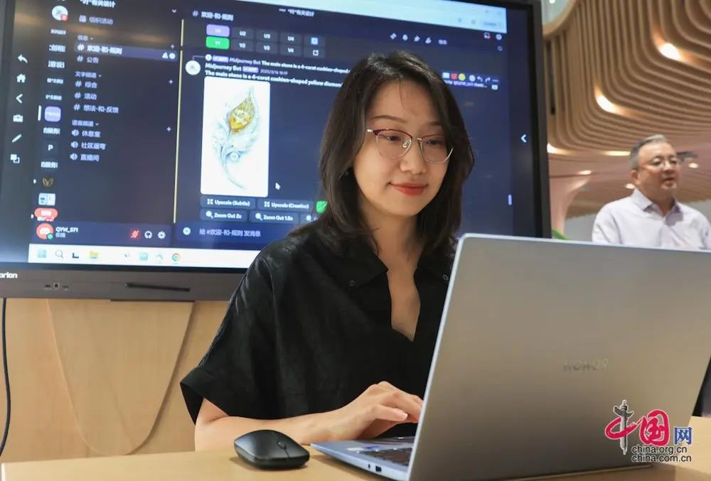 珠宝设计师王秋媛在深圳市翠竹街道水贝社区就业驿站学习完成了AI+珠宝设计、AI+短视频剪辑课程,并成为水贝夜校珠宝设计基础课程的授课老师。中国网记者 伦晓璇 摄“请帮我以一叶知秋为主题,生成叶子形状的珠宝设计图”,在深圳市翠竹街道水贝社区就业驿站,珠宝设计师王秋媛正利用AI模型完善珠宝设计图。通过不断优化指令,设计图也越来越符合她心目中的需求。