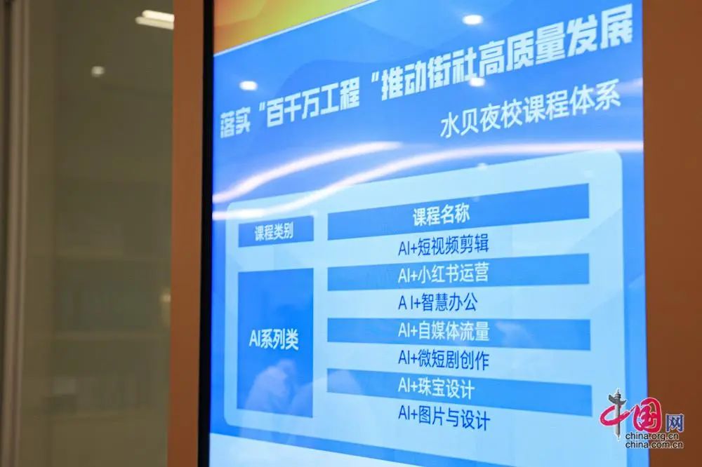 以AI夜校为支点,水贝社区形成了“产教融合赋能传统产业升级”的模式。除了AI夜校,水贝社区还开设了直播技能、珠宝鉴定、手工编绳等课程,帮助学员通过技能培训提升就业创业能力。