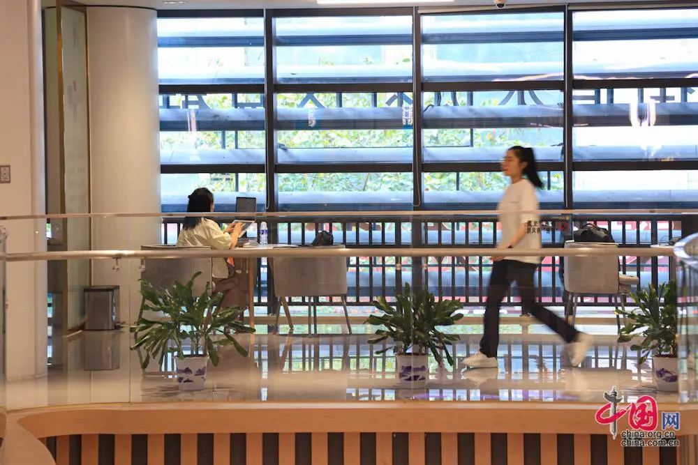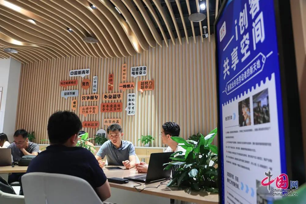 以AI夜校为支点,水贝社区形成了“产教融合赋能传统产业升级”模式,打造“技能培训+职业指导+创业指导+权益维护”四位一体的闭环式公共就业服务品牌。图为几名从业者在水贝社区i创客共享空间进行交流。中国网记者 伦晓璇 摄