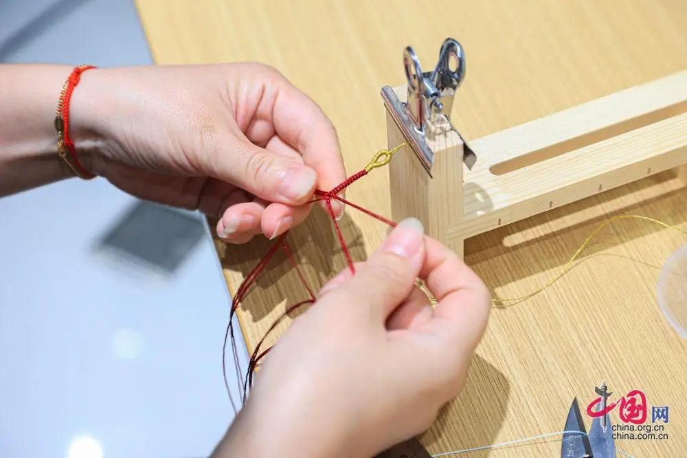 除了AI夜校,水贝社区还开设了直播技能、珠宝鉴定、手工编绳等课程,帮助学员通过实现技能提升助力就业创业。图为一名学员正在制作手工编绳作品。中国网记者 伦晓璇 摄