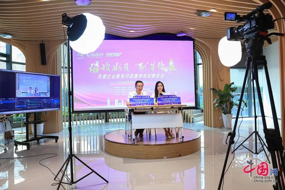 水贝作为全国最大、产业链条最完善的黄金珠宝产业集聚区,对专业人才有着旺盛需求。图为一场直播带岗活动正在水贝社区进行。中国网记者 伦晓璇 摄