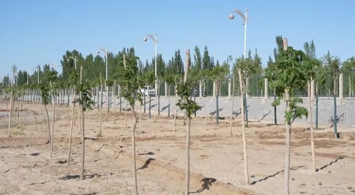 党河东路南段绿化带建设项目以胡杨为主题打造郊野公园,既彰显了敦煌独特的自然风光和文化底蕴,又为市民和游客提供了亲近自然、放松身心的休闲场所。胡杨坚韧不拔的品质与敦煌的历史文化、莫高精神相呼应,其秋季金黄色的壮丽景观与敦煌的沙漠、戈壁相得益彰,提升了城市绿化品质。该项目的实施将为敦煌增添新的生态景观,提升城市生态环境质量和文化内涵,增强市民的幸福感。