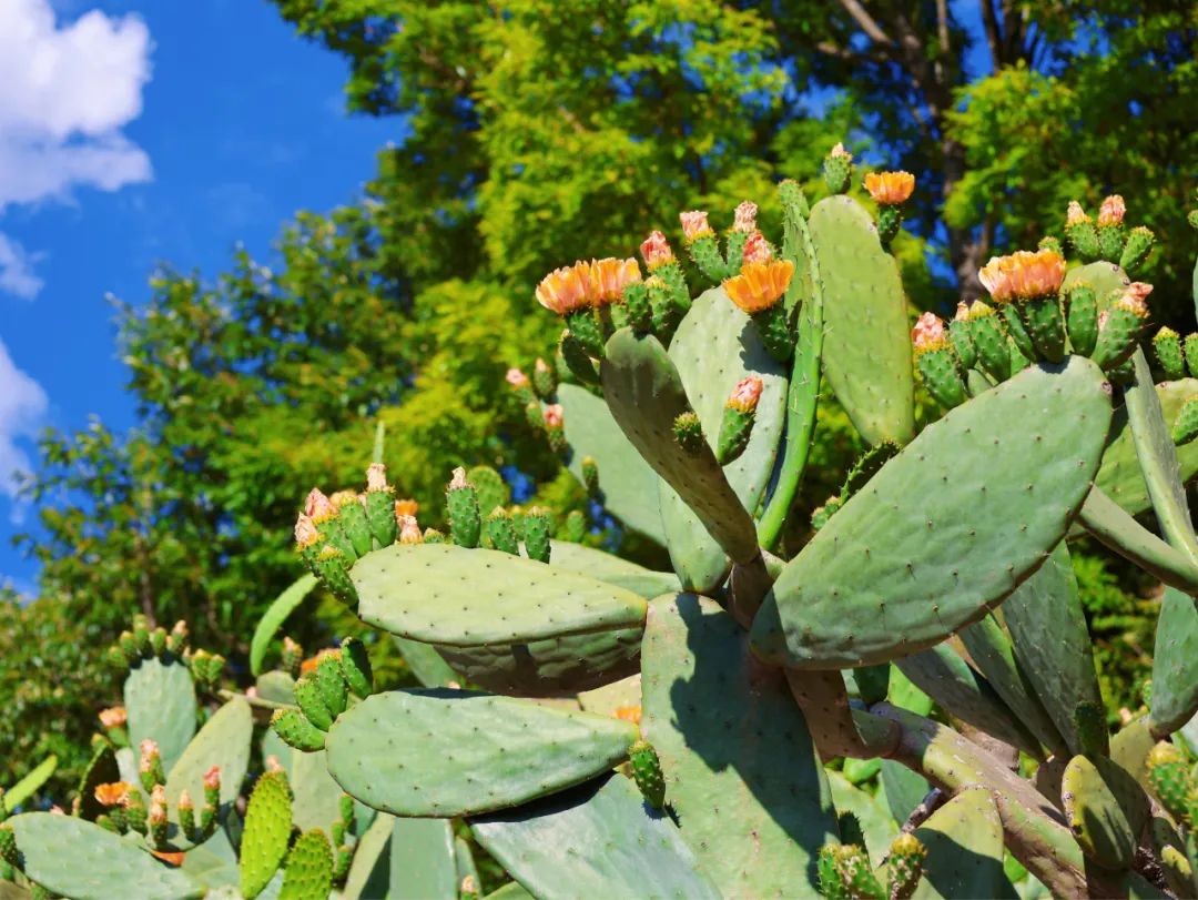 一株株仙人掌挺立如卫士顶端或侧旁绽放着
