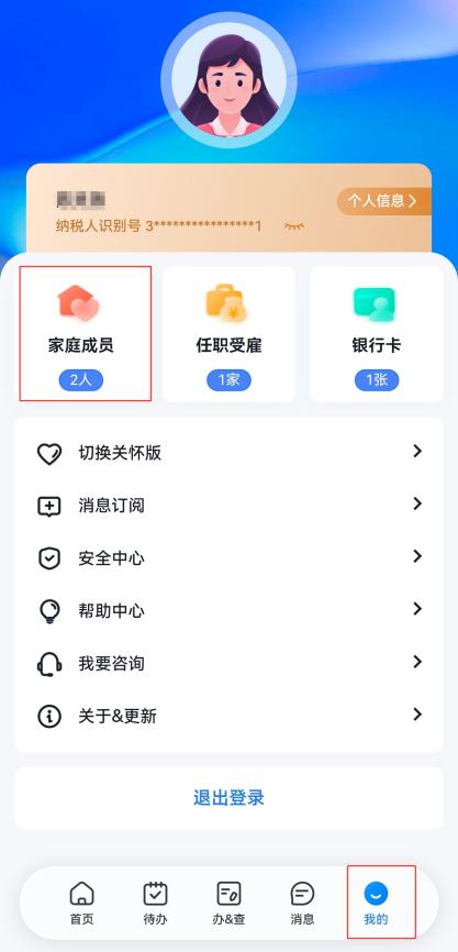 操作步骤:登录个税App,点击【我的】-【家庭成员】