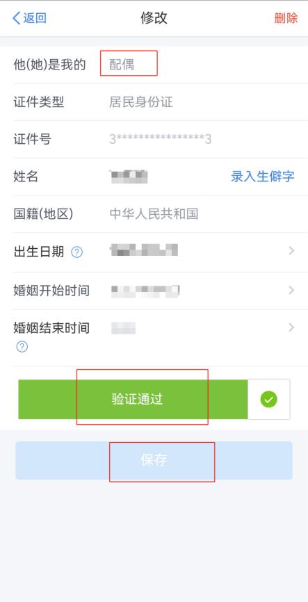 如您此前已添加配偶信息,点击配偶信息查验是否有误,进行修改验证通过后点击【保存】。