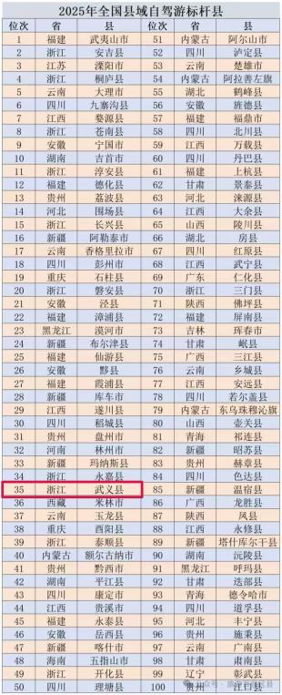 近日,新华社刊发报道聚焦《全国县域自驾游研究报告2025》发布。有着“温泉名城”“康养之都”之名的武义位列“2025全国县域自驾游标杆县”第35名。