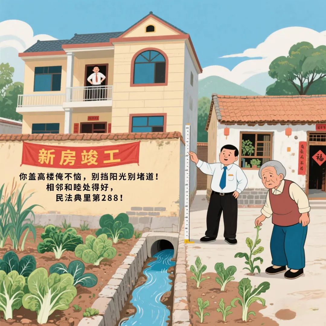 法条指引《民法典》物权编第288条:不动产的相邻权利人应当按照有利生产、方便生活、团结互助、公平合理的原则,正确处理相邻关系。