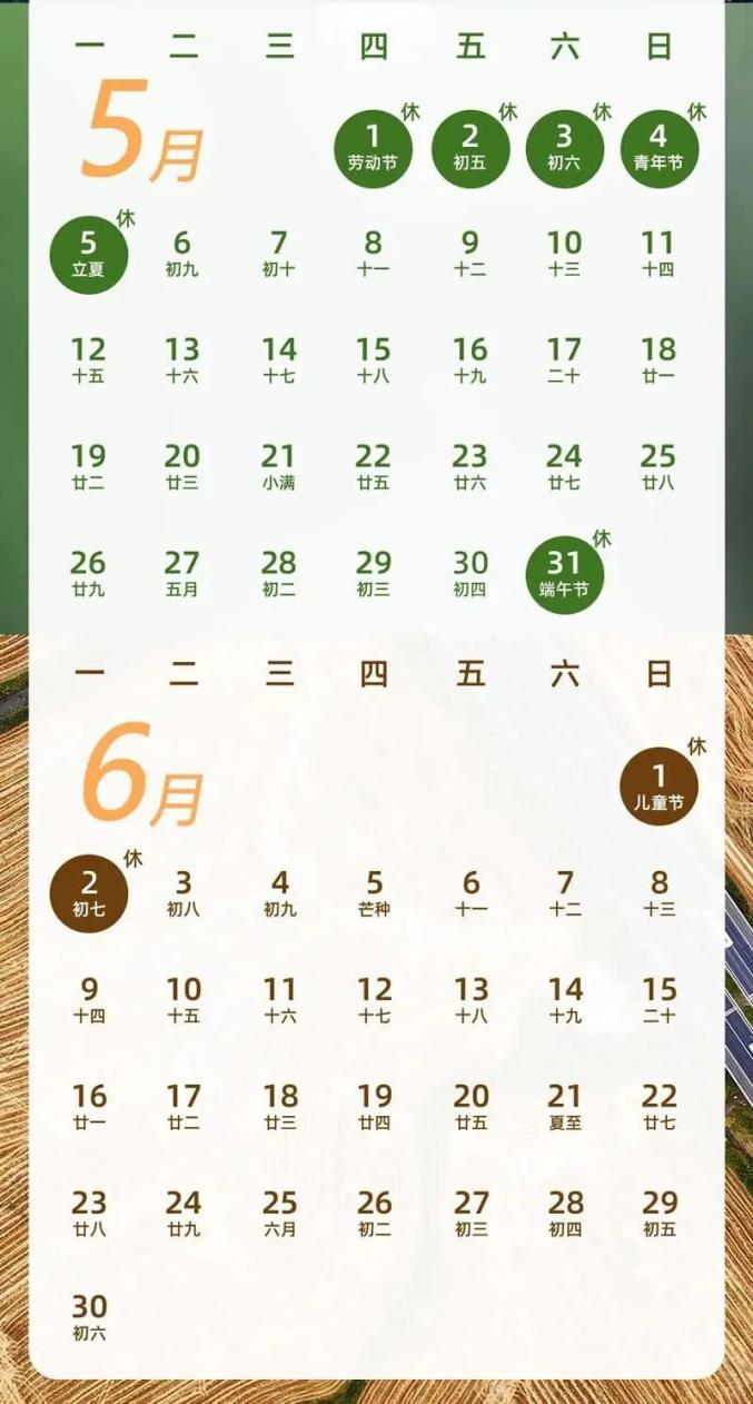 5月31日(周六)至6月2日放假