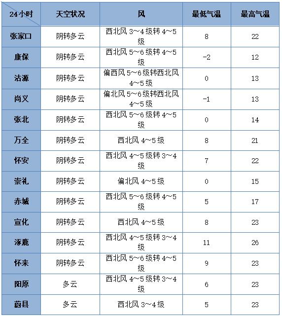 张家口市气象台2025年5月16日10时47分发布大风蓝色预警信号:预计未来24小时全市有西南风转西北风4~6级,阵风7~8级,局地可达9级以上,请注意防范。