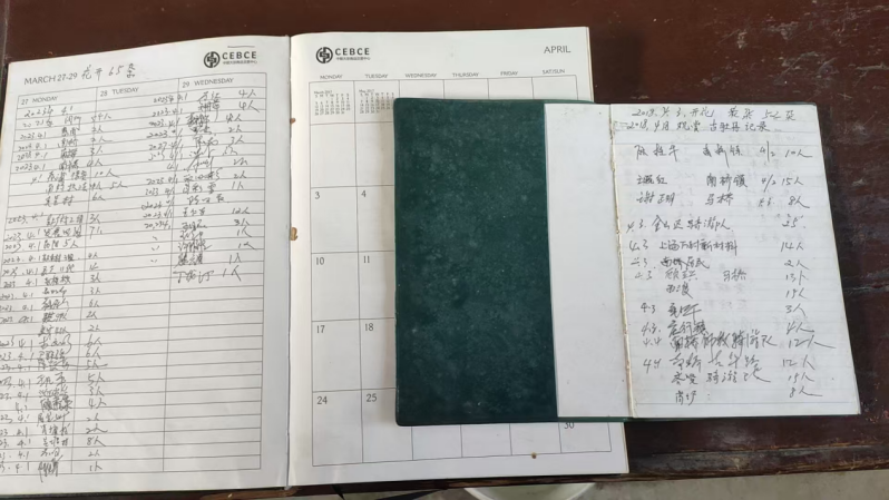 翻开金书林的养护笔记,访客签名密密麻麻。最多的一年,有超过1万名游客慕名而来。“洛阳的专家、福建的画家,还有崇明来的上班族,来自全国各地的人都来看这株古牡丹,一开始他们还不相信这株牡丹活了500年。”金国强说。