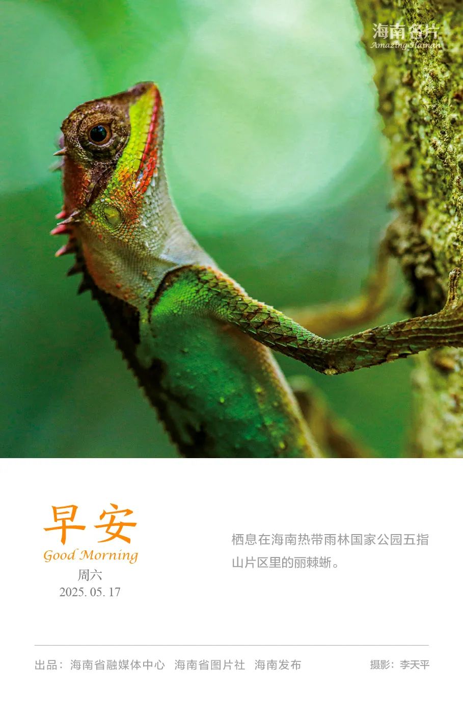 海南省气象台预计,5月17日,海南岛大部地区多云,局地有雨,最高气温28~34℃。(来源:海南气象)