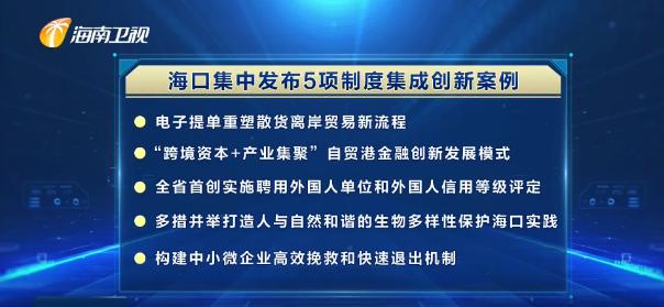 海口5月16日发布5项制度集成创新案例,涵盖离岸贸易、跨境金融等领域。详情(来源:海南新闻联播)
