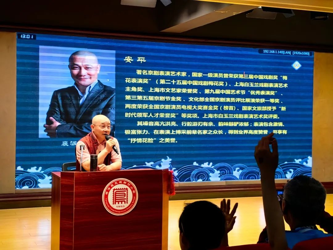 此次讲座由国家一级演员、“梅花奖”得主安平老师主讲。作为裘派花脸代表人物,安平老师以“抒情花脸”享誉业界,曾斩获白玉兰奖、京剧节金奖等数十项殊荣。他用幽默通俗的语言,在学生互动问答中,让学生们认识京剧,同学们不尽惊叹:“原来京剧里藏着这么多‘中国智慧’!”