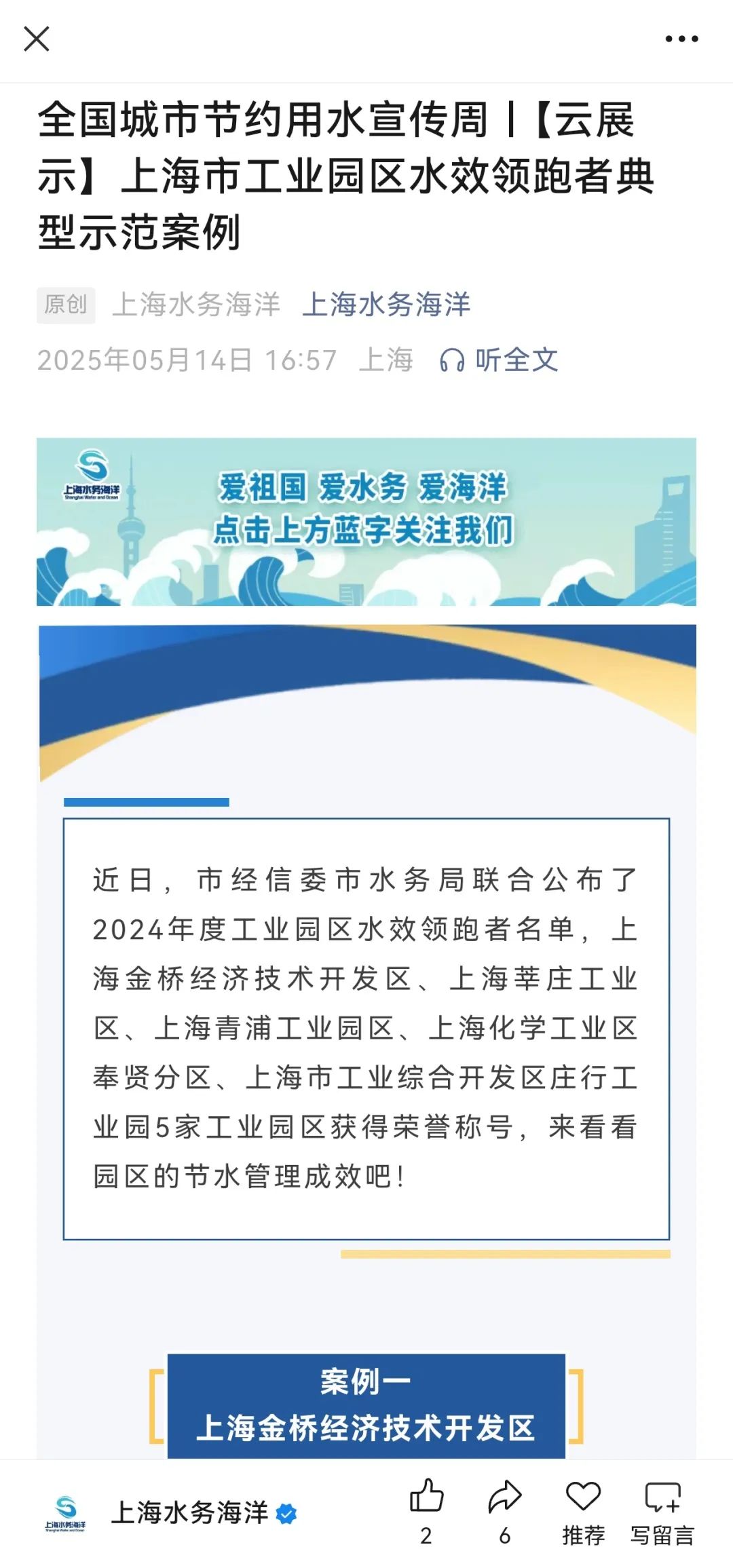 2025年上海“全国城市节约用水宣传周”以科技为笔、以实践为墨,勾勒出“全民节水、全域共治”的生动图景。节水之路,始于点滴,成于众力。未来,上海将继续以宣传周为契机,推动节水理念深度融入城市治理脉络和生活日常,为实现人与自然和谐共生的美好愿景贡献更多“上海智慧”与“申城力量”!