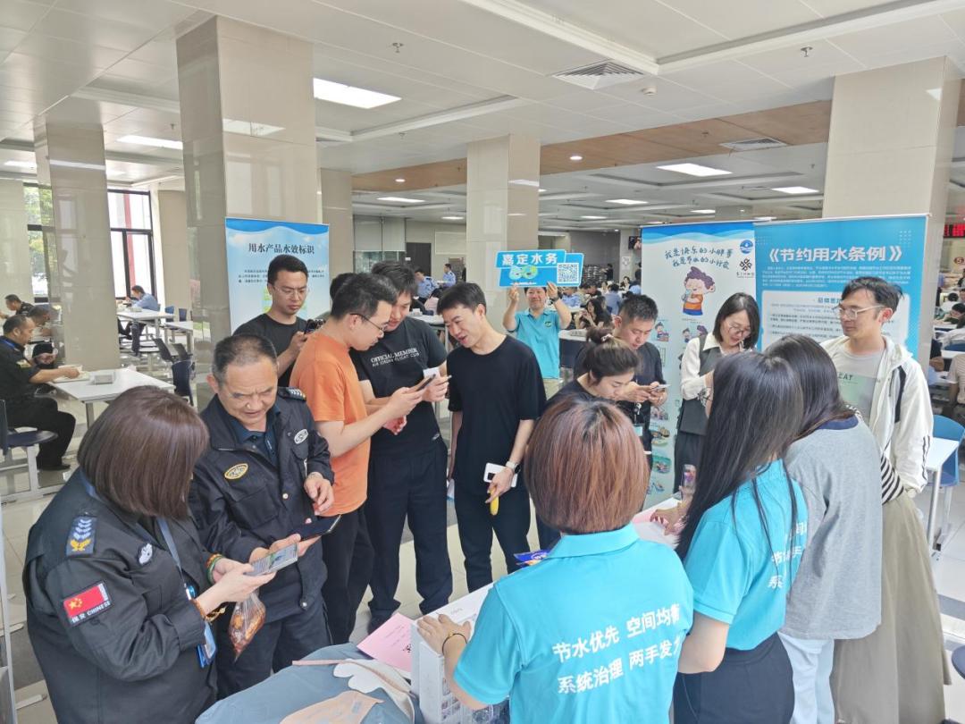 嘉定区水务局在伏虎村党群服务中心举行“全国城市节水宣传周”启动仪式。区水务局携手区机管局,在嘉定司法中心开展节水咨询,解读最新的节水政策和法规;联合区教育局,开展节水宣传进校园活动,化身“节水讲师”,通过图片、视频等多媒体形式,向学生们详细讲解了水资源现状、节水的重要意义以及节水小妙招;联合嘉定区绿容局开展以“沪上洗车新主张 绿色低碳我先行”为主题的宣传活动,现场通过政策宣导、互动科普等形式,掀起绿色洗车行动热潮。
