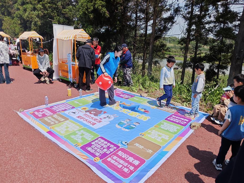 崇明区水务局联合堡镇人民政府于江堤开展节水宣传周活动,创新嵌入文旅元素打造开放式节水课堂。现场,专业画师绘制色彩斑斓的节水护水主题画卷,吸引游客拍照打卡,潜移默化传递理念;节水小摊前,志愿者发放手册、讲解《节约用水条例》,普及水效标识、家庭节水妙招,动员参与全国节水知识竞赛。此外,通过游戏让游客在趣味互动中加深对节水知识的理解,提升了公民节水意识,让节水护水理念深入人心。