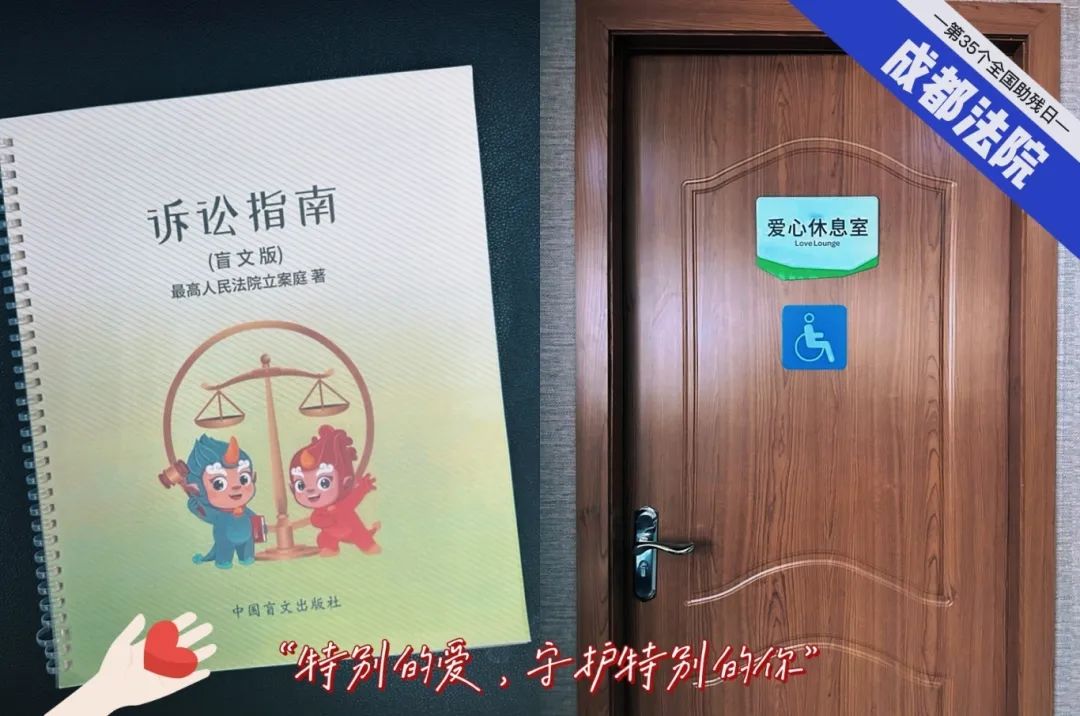 成都法院秉持“如我在诉”的工作理念,积极完善配套设施建设,配备助听器、放大镜、手写板、拐杖、轮椅、盲文版诉讼指南、急救医药箱等便民设施,升级改造无障碍通道、无障碍卫生间、爱心休息室等便民场所,让公平正义不打折扣。