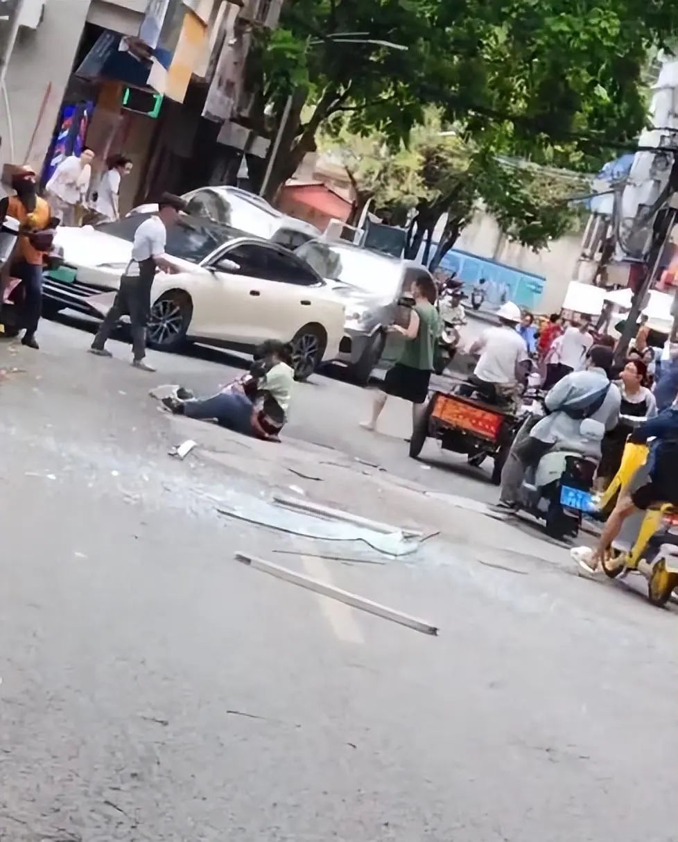 现场视频显示,一女子蹲坐在地上怀里抱着孩子呼救,而不远处就是一摊粉碎的玻璃碴。另有网友发布的行车记录仪视频拍下了玻璃窗从高空坠落的瞬间。