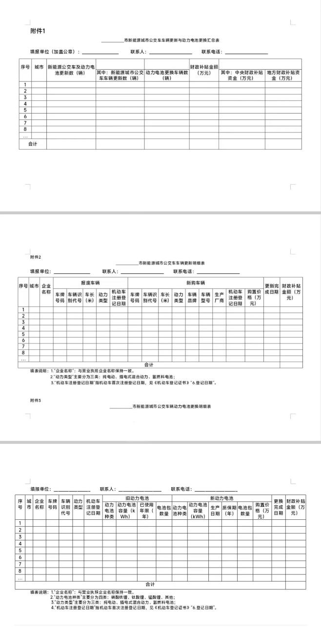 附件:1. 市新能源城市公交车车辆更新与动力电池更换汇总表