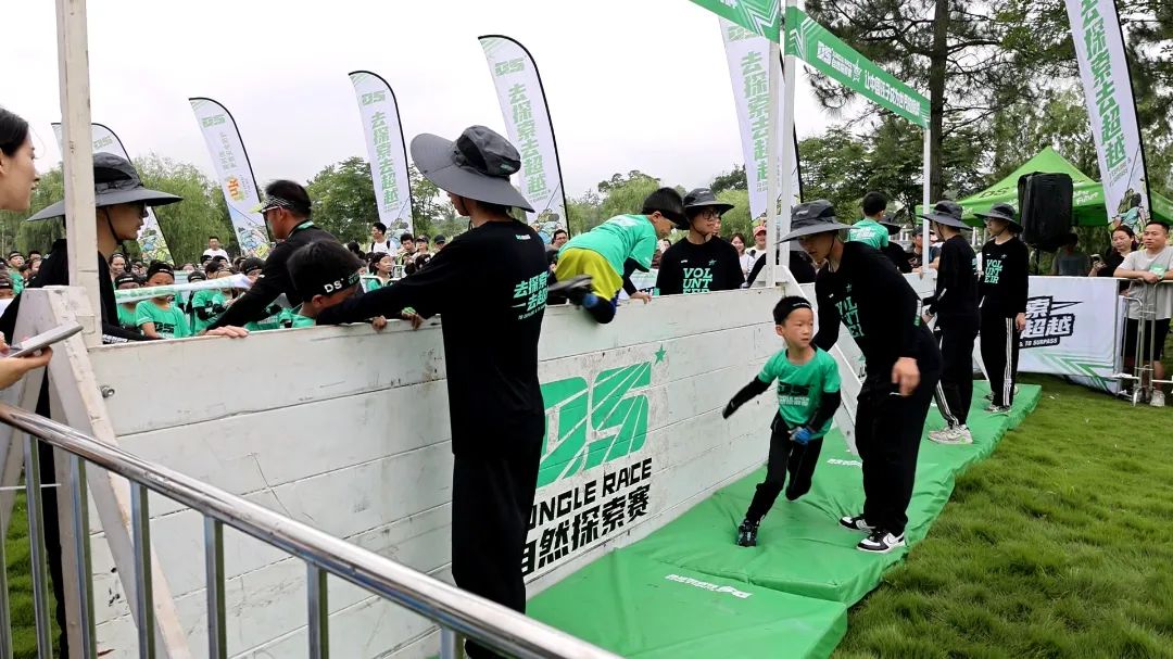 5月17日,2025 DS自然探索赛金华站在我县坛头湿地公园激情开赛。这场以“去探索去超越”为核心理念的青少年户外赛事,吸引了金华及周边地区3000多组家庭参与,参赛规模较去年有所提升。作为国家级湿地公园,坛头湿地凭借其绿色生态本底,连续三年成为该项赛事的举办地,实现了自然禀赋与户外运动的完美共振。上午9点,身着绿色参赛服的队员们在生态赛道上整齐集结。随着裁判一声清脆的哨响,队员们如离弦之箭般冲向首道关卡“探索之门”。他们在赛道上尽情奔跑,一头扎进模拟“东南亚雨林”赛段,穿越象征“科罗拉多”的崎岖路段,攀爬宛如“乞力马扎罗”的高难度障碍……当最后一道关卡“跨越尼亚加拉”映入眼帘,队员们奋起冲刺,在泥泞的赛道上留下了一串串成长的足迹。