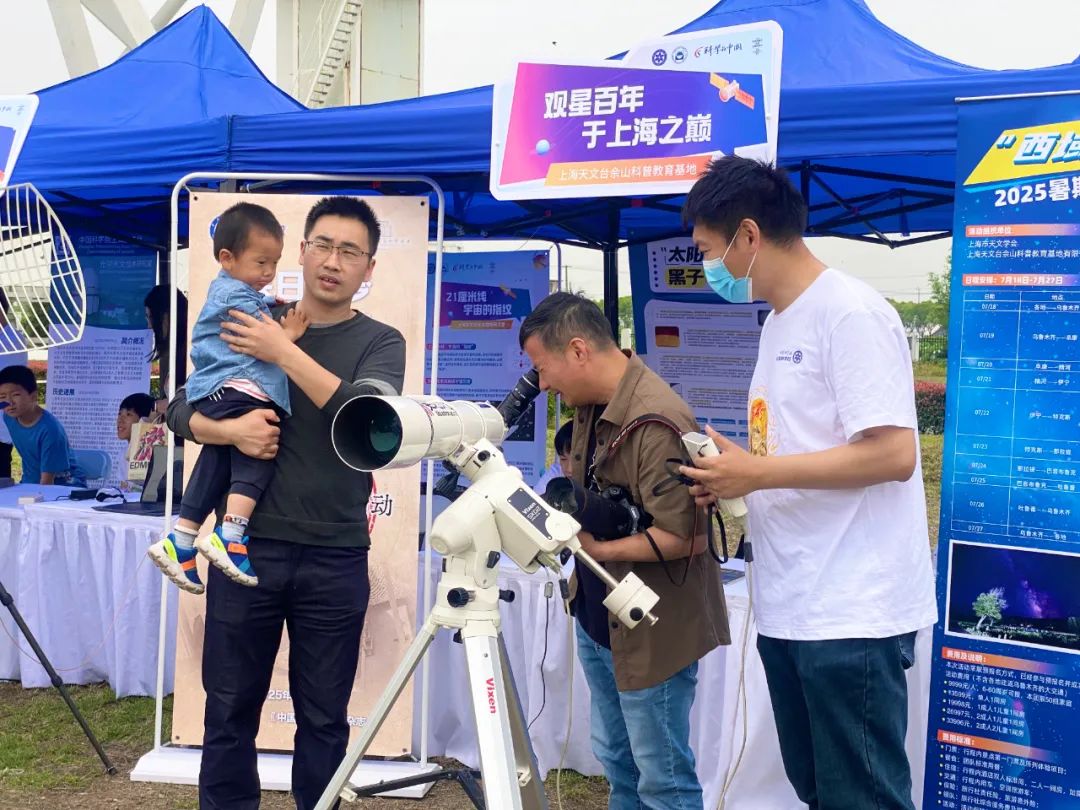 与科技节开幕式同时开展的是上海天文台2025公众科学日活动。“这次我们带来一些小型天文望远镜,以及射电、原子钟、天体物理等领域最新研究成果展示。”上海天文台佘山科普教育基地主任汤海明介绍,另外,基地每年会更新临时展览和专题展览,向市民传递天文学方面最新研究成果,每个月有坚持10年的“天之文”系列科普讲坛,邀请天文学领域一线科学家分享最新研究成果和天文热点解读。另外,天文展览也会转化成流动展带到各个学校,激发青少年对天文学的学习热情。
