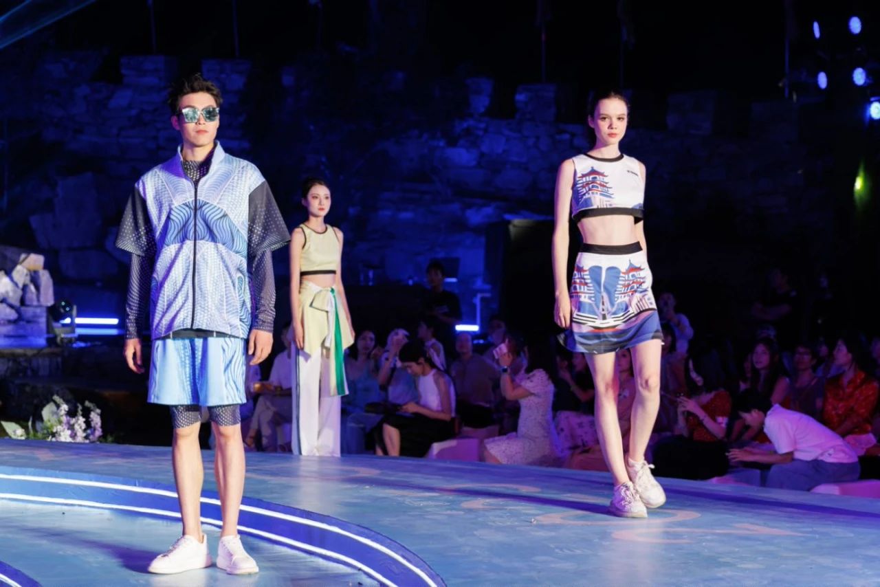 以宜昌山水为灵感、以三峡岩层为纹理,用青山绿水解构的一组"新宜昌符号"潮服惊艳亮相。