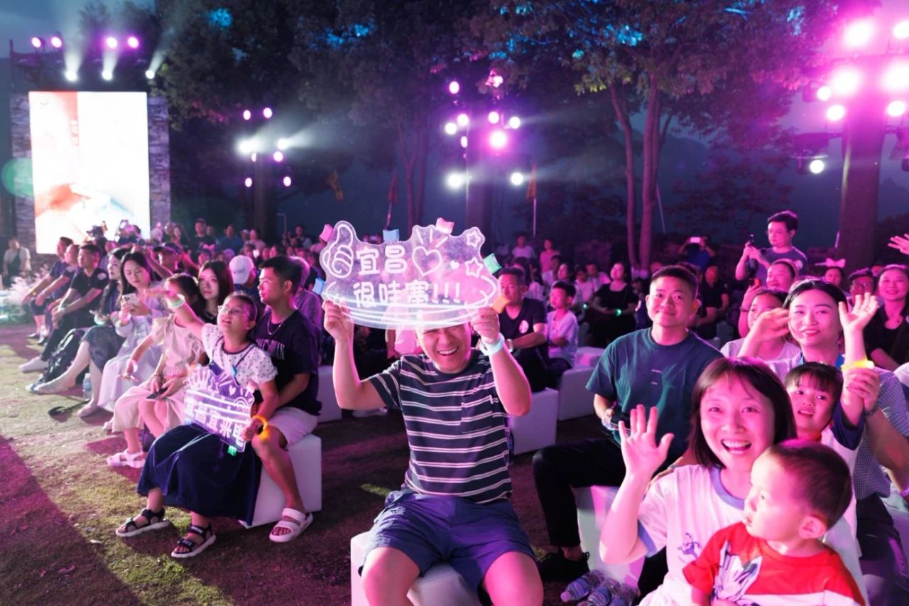 活动在草地音乐秀中落下帷幕,新生代歌手接连演绎流行金曲混搭电子remix版,宜昌原创歌曲引发全场手机灯海。"文旅+音乐"融合新尝试,用跳动的音符为城市夏夜注入潮流基因。