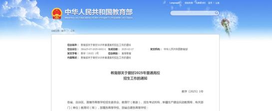 《关于做好2025年普通高校招生工作的通知》