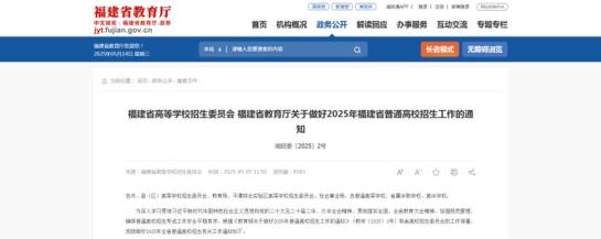 《2025年福建省普通高等学校招生工作