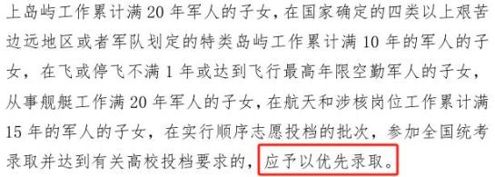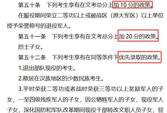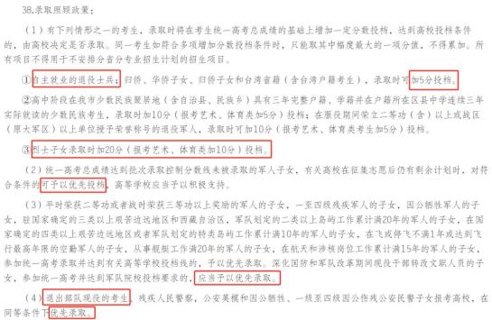 符合条件的退役军人、军人子女高考加分分值与优先录取政策