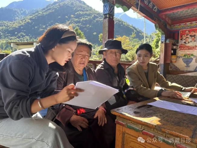 图为林芝市墨脱县格当乡驻村干部正在进行经济数据统计。记者 王敏 通讯员 郎玲 摄