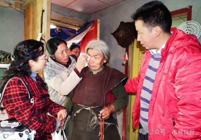 图为林芝市林芝镇康扎村驻村工作队队员看望慰问五保户。通讯员 王长江 麦大海 摄