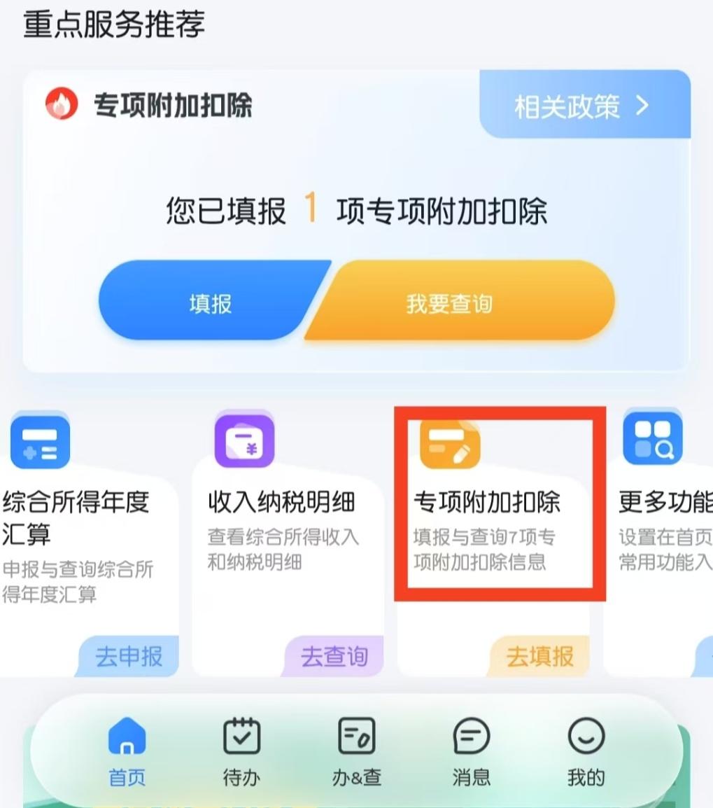 打开个人所得税App,进入首页,点击“专项附加扣除”。