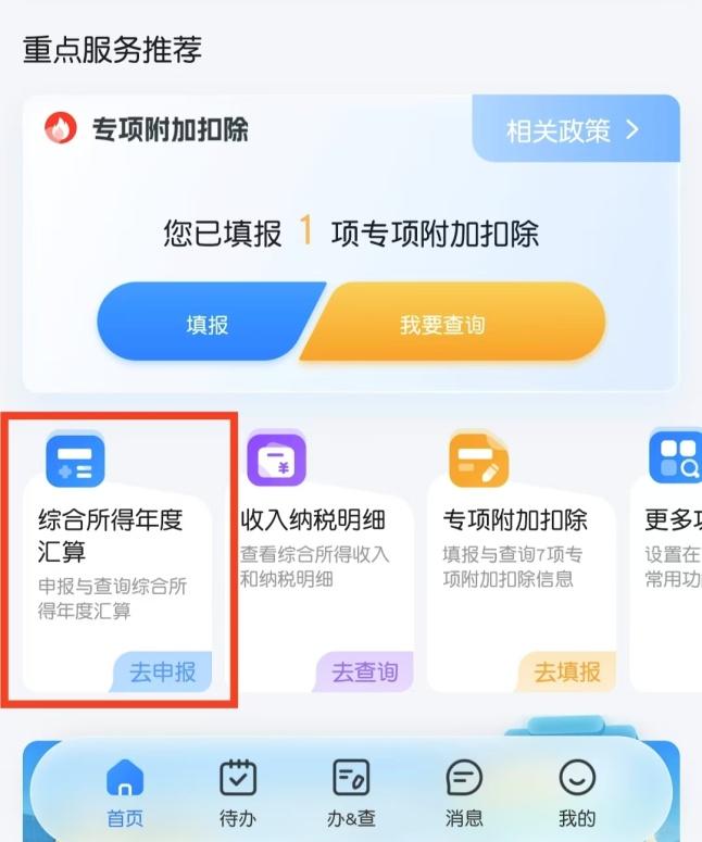填报完毕后回到首页,点击“综合所得年度汇算”,选择对应的年度。