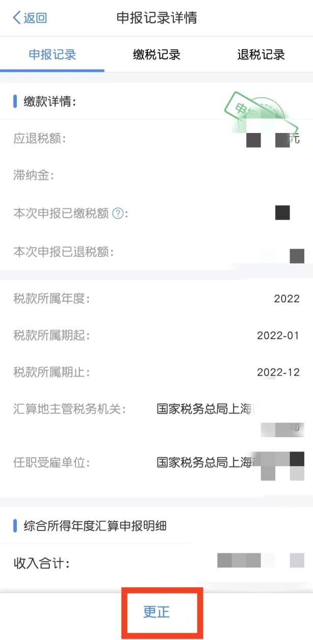 点击“更正”,核对完个人基础信息,点击“下一步”开始更正申报。
