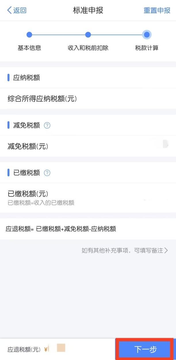 根据税款计算结果,点击“下一步”办理退(补)税流程即可。